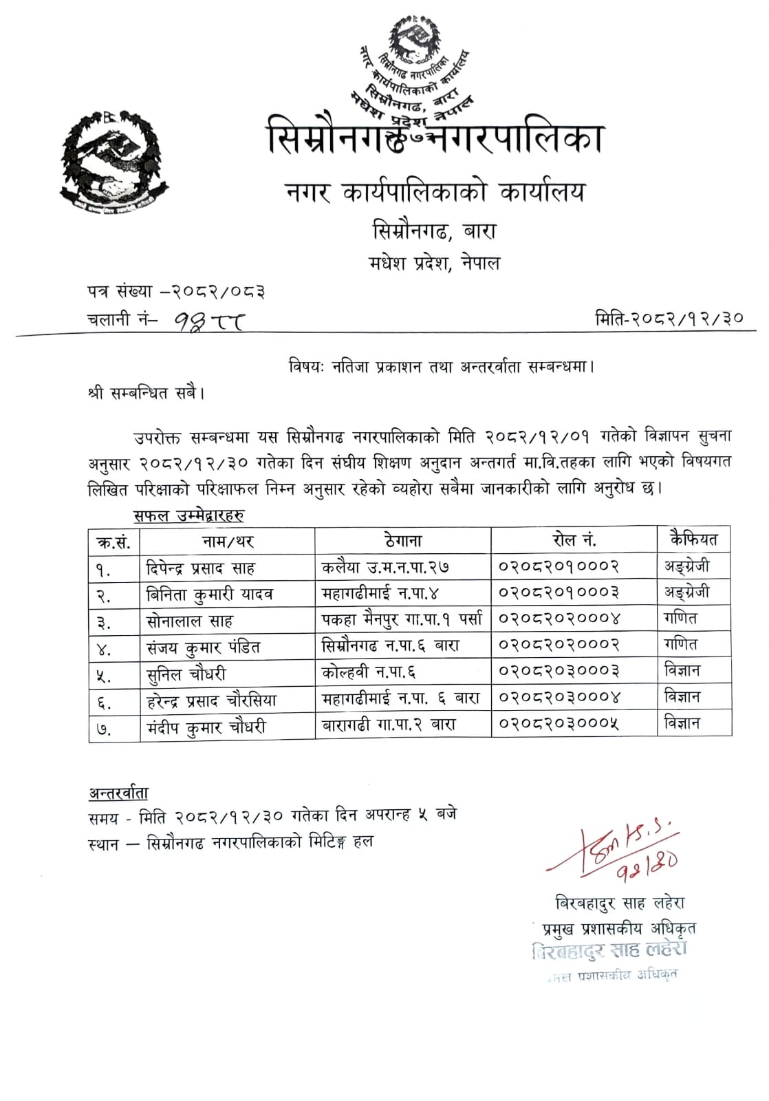नतिजा प्रकाशन तथा अन्तरवार्ता सम्बन्धा ।