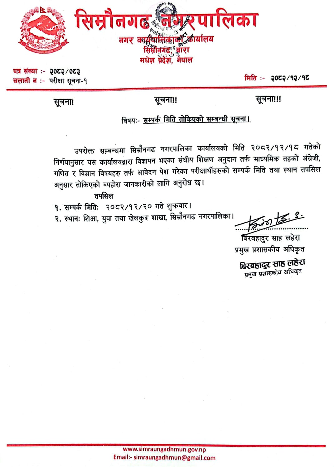 सेवा करारमा शिक्षक पदपु्र्तीको लागि सुचना अब्हान