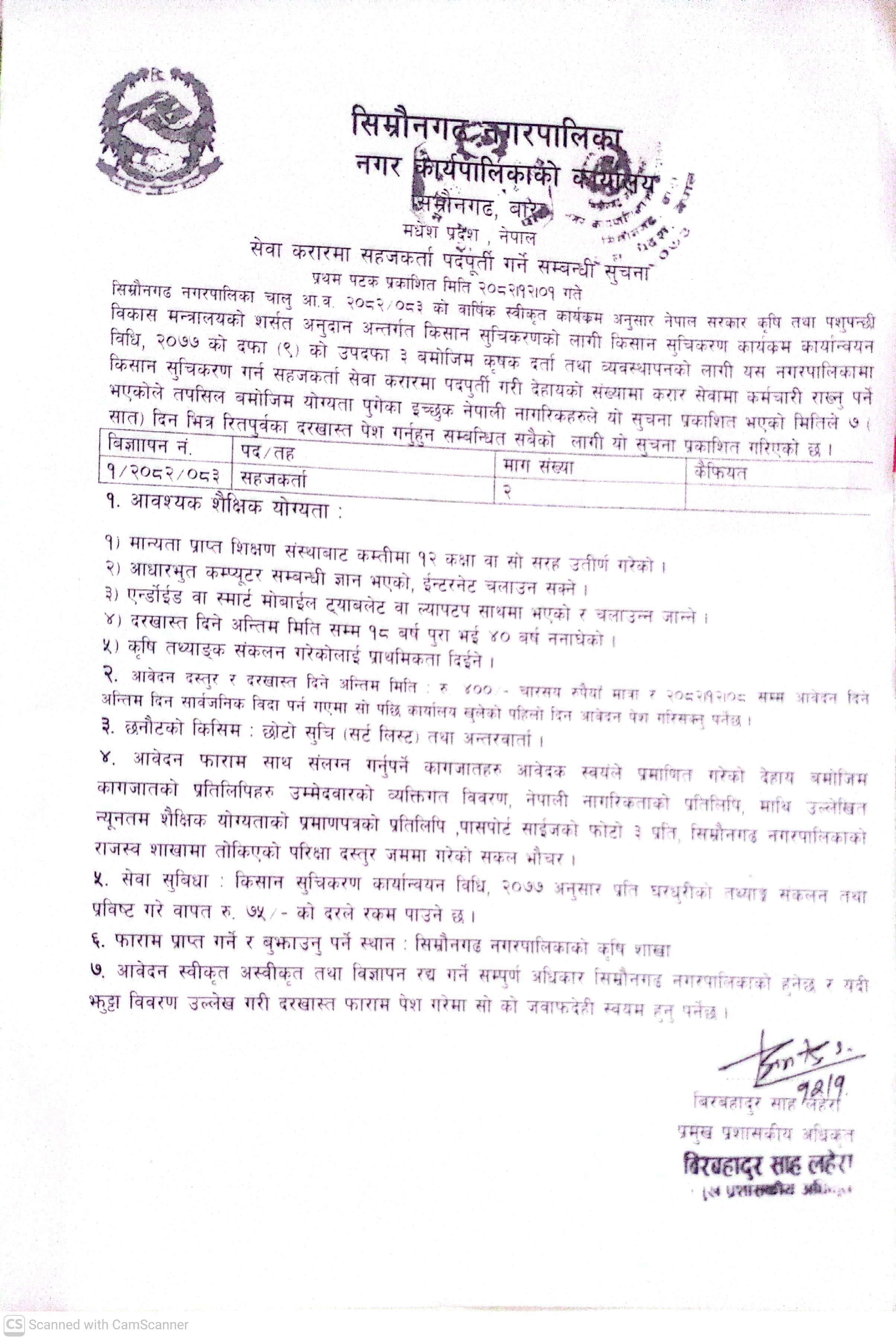 स्वाथ्य शाखा तर्फ विभिन्न पदमा कर्मचारीको आवश्यकता