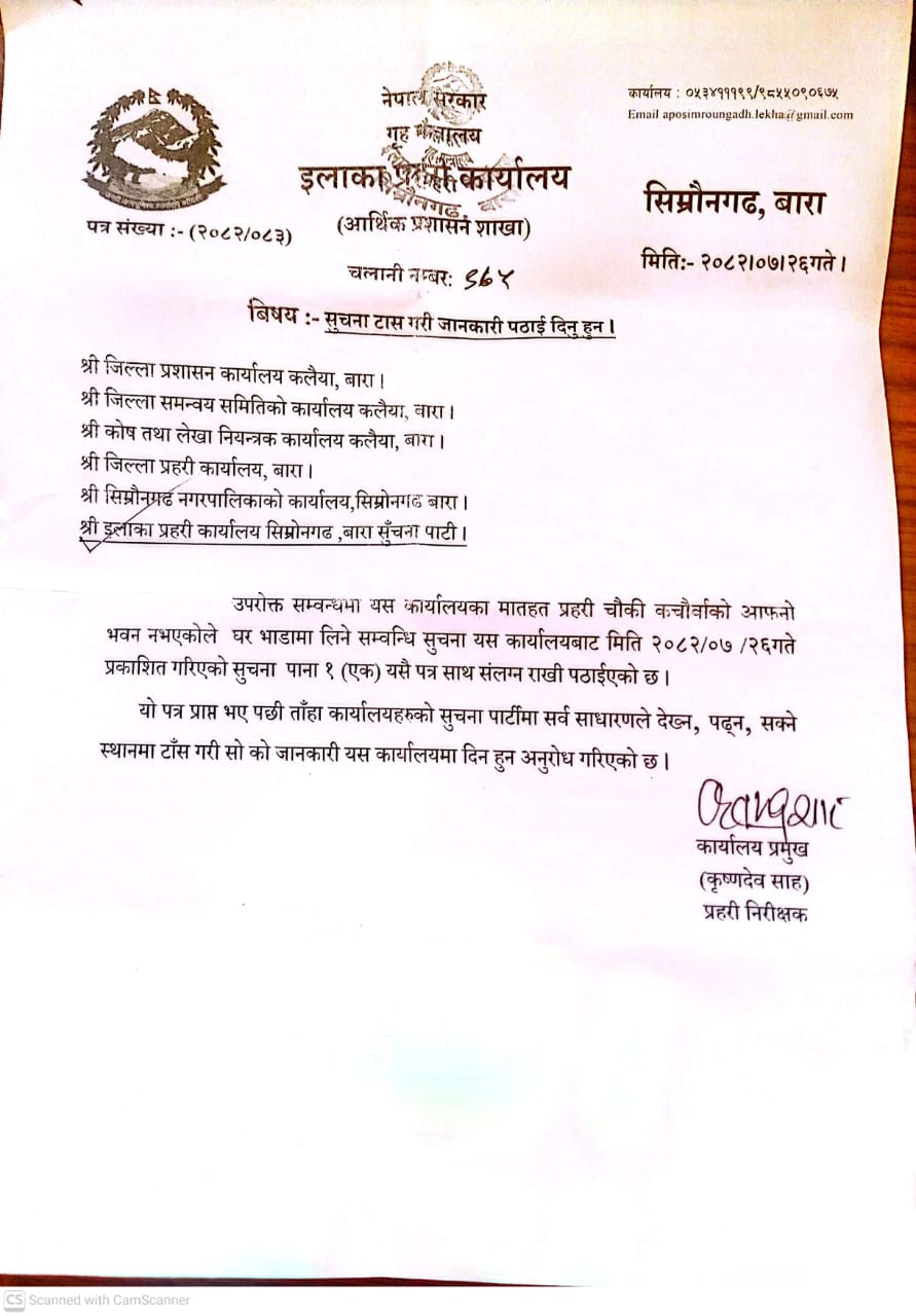 » ई.प्रहरी कार्यालय सिम्रौनगढको सुचना ।