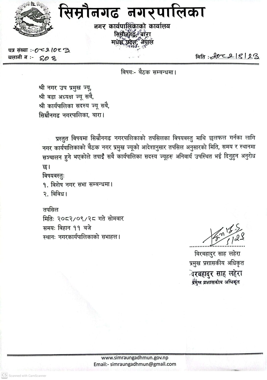 बैठक सम्बन्धमा ।