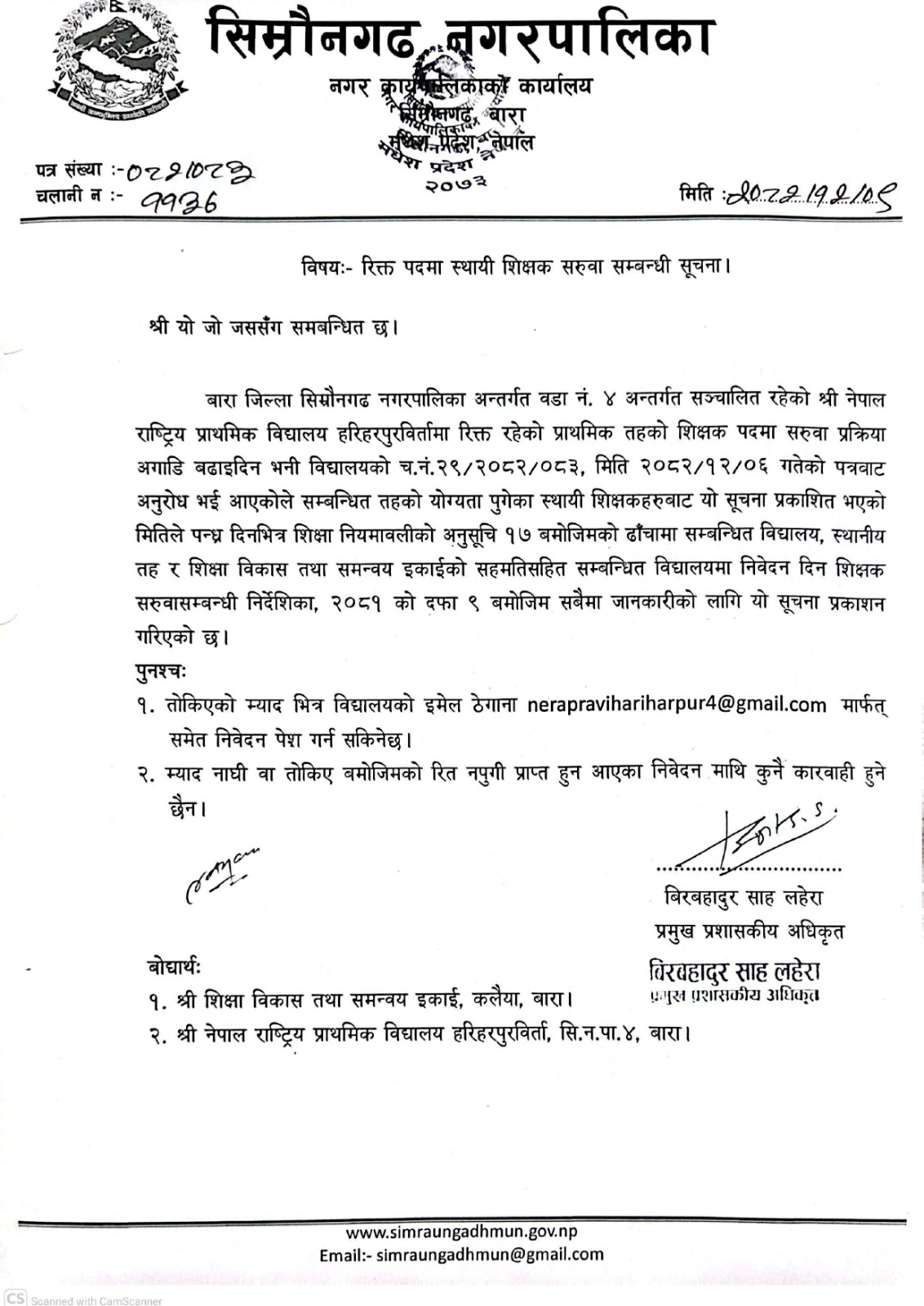सेवा करारमा शिक्षक पदपु्र्तीको लागि सुचना अब्हान