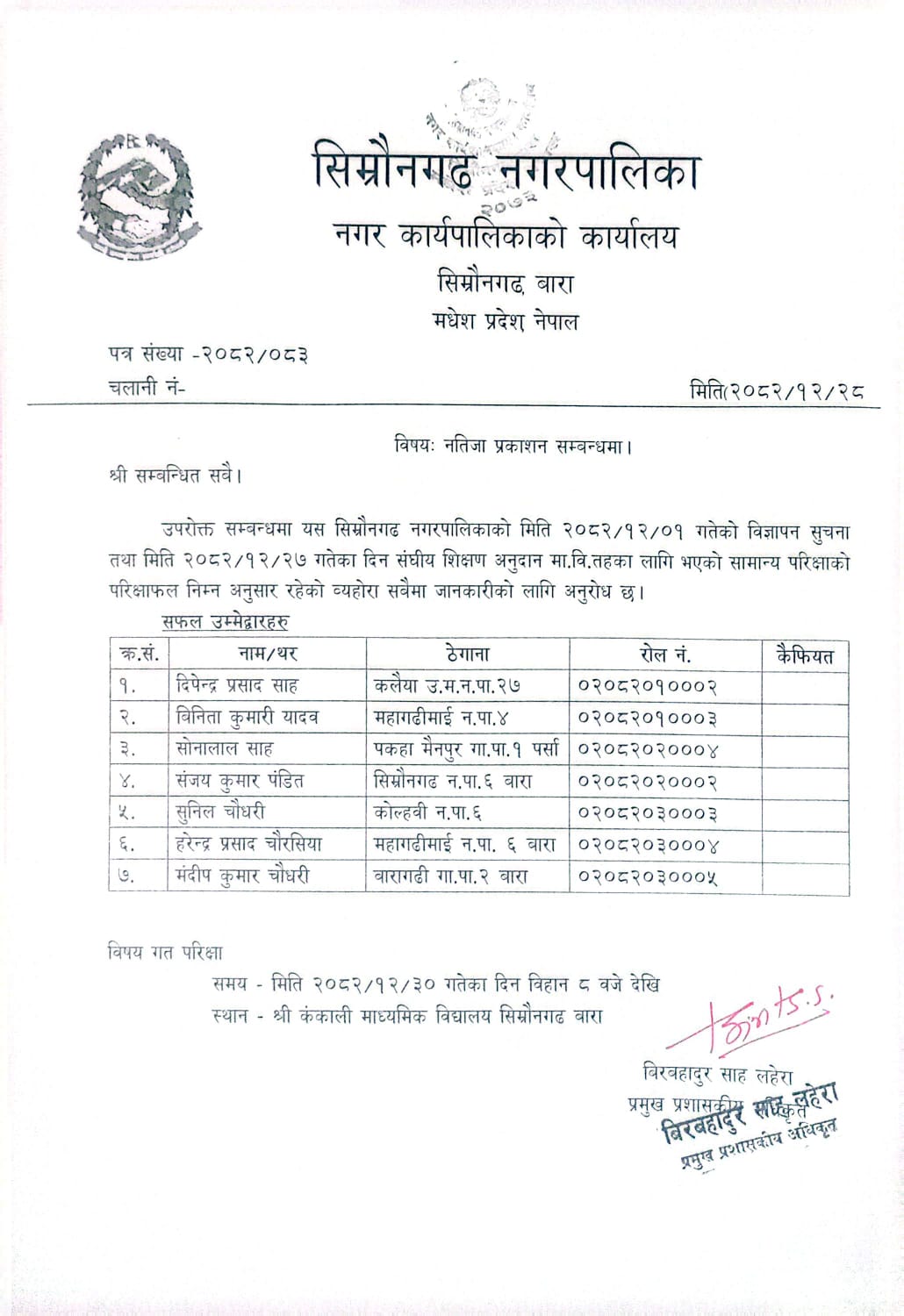 संघीय शिक्षा अनुदान मा.वि तहका लागि भएको सामान्य परीक्षा को नतिजा प्रकाशन सम्बन्धमा ।