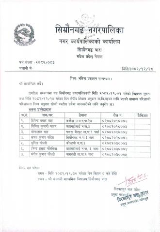 माछा पोखरी शिलबन्दी बोलपत्र अब्हानको सुचना ।